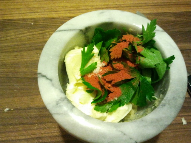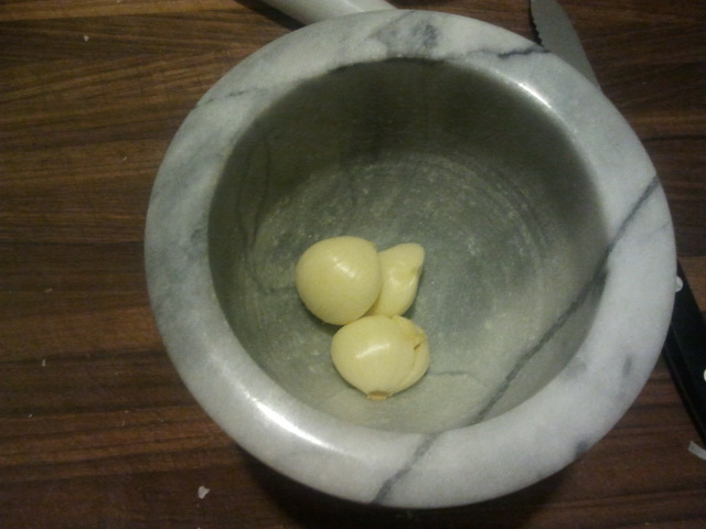 I got to use my mortar and pestle again! I started with just the garlic, as I wanted them to be a nice paste.