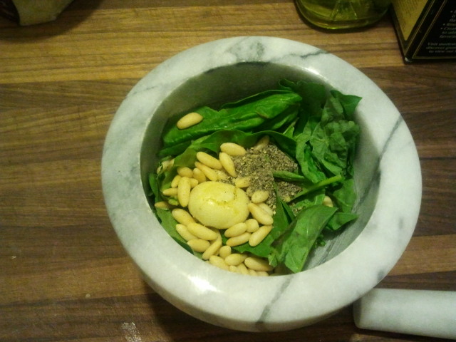 This recipe calls for you to make a pesto, and what better way than with a mortar and pestle?