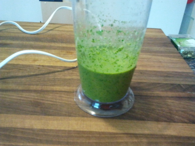 The recipe for this is simple. Put all of the ingredients in a food processor and go to town. To be honest, I abhor cleaning my food processor, so I went for my stick blender instead. Cleaning this is a breeze compared to the hulk and bulk of the food processor.