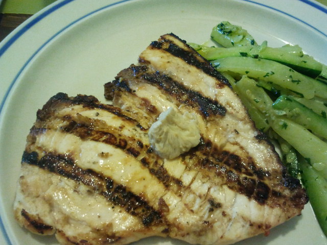 Meanwhile, the swordfish was getting acquainted with the marinade, and the butter was almost ready.